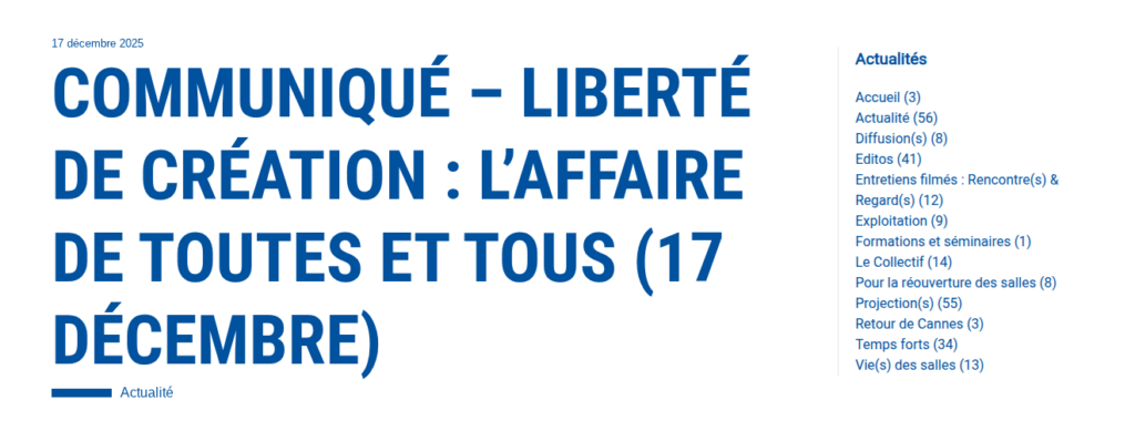 Le 17 décembre 2025, le Groupement National des Cinémas de Recherche (GNCR) publiait une tribune pompeuse sur la « Liberté de création ». Pourtant, derrière les grands mots, la réalité est celle du boycott et de l’entre-soi.