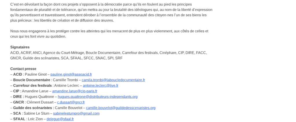 lien de leur comuniquer: https://www.gncr.fr/communique-17-decembre-liberte-de-creation-laffaire-de-toutes-et-tous/